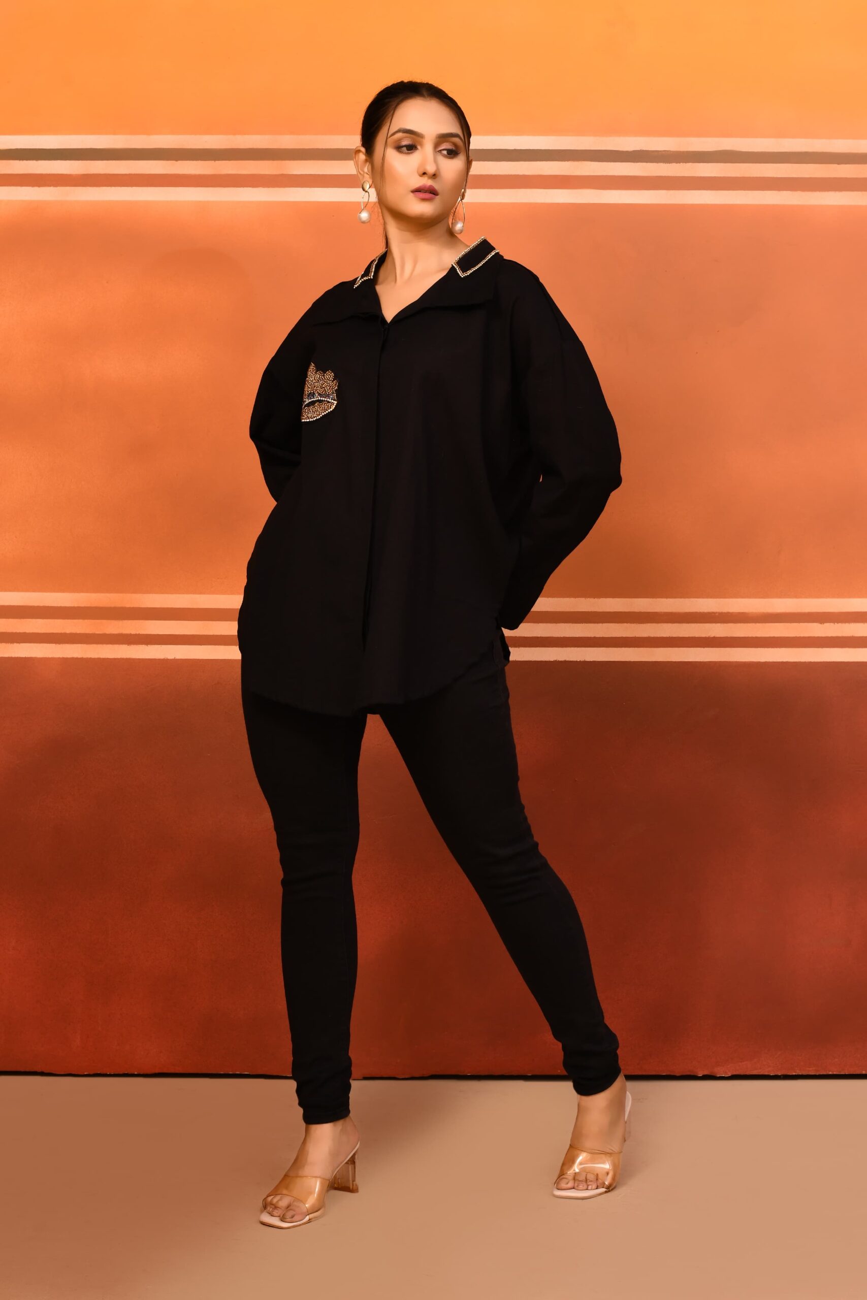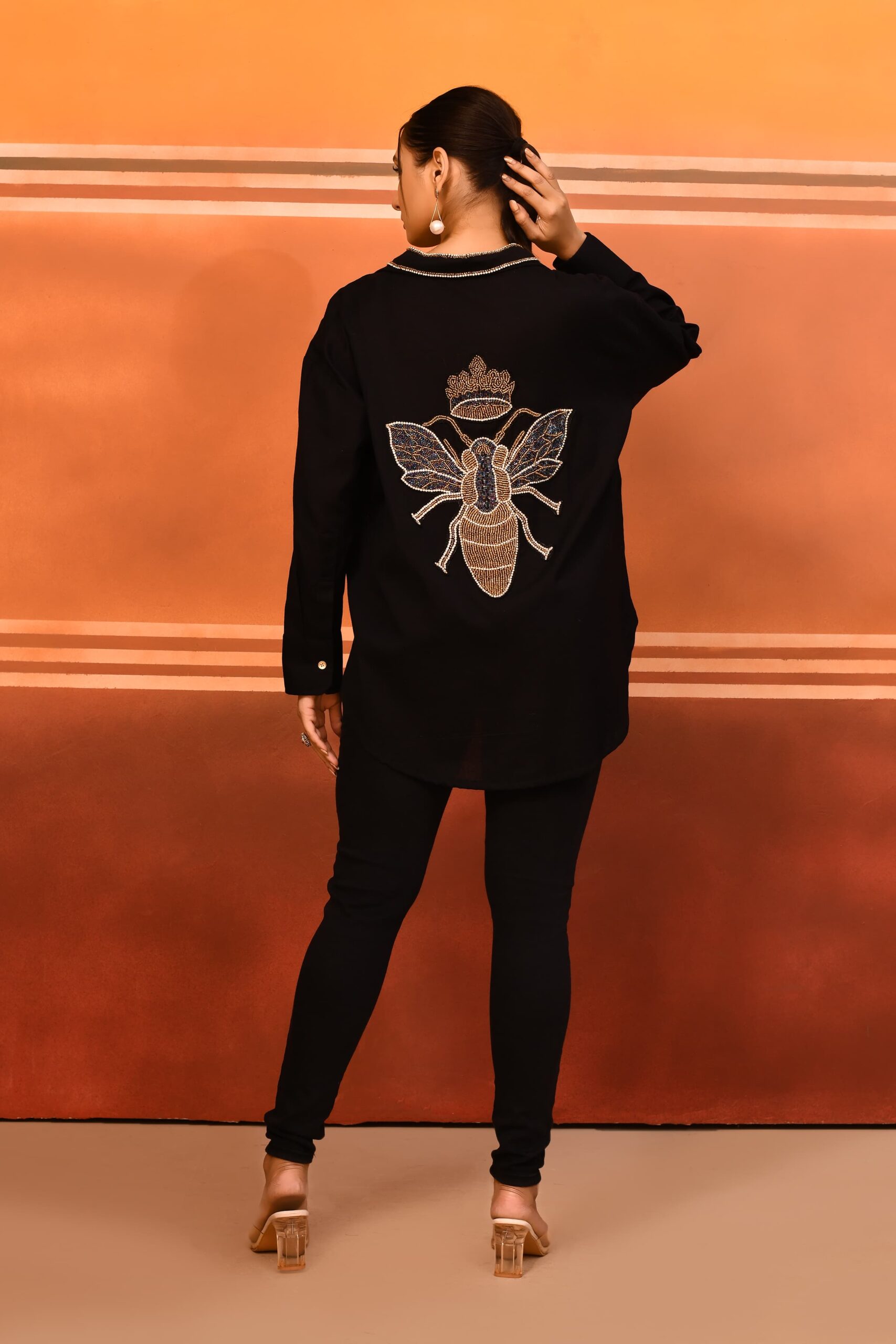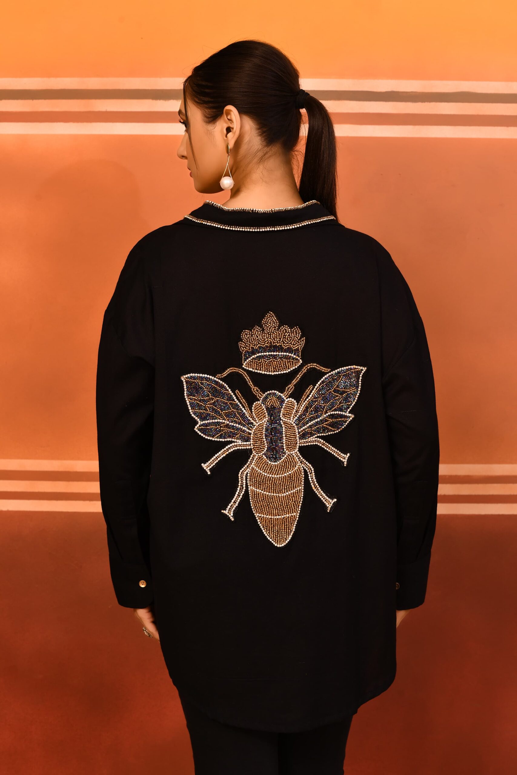Hand encrusted stones defining the Queen Bee Color: Black Fabric: Pure Linen Size: nan